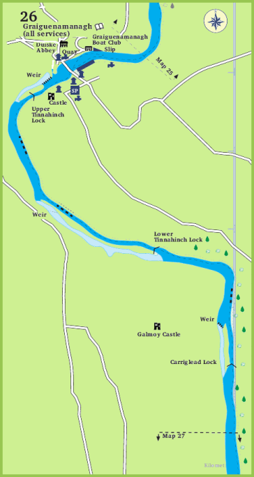 under the bridge. Upper Tinnahinch weir and cut are immediately below