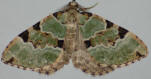 Wing colour pale green with mottled band running from dark patches on the wing edge. Found near meadows, heath and open ground.