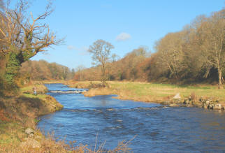 Crossing over the river and heading in the direction of Baltinglass, the Slaney Drive turns to the left along the R726 in the direction of Carlow. A series of minor roads leads the visitor to Tullow and offers several viewing points of the River Slaney. Along this route, at the crossroads leading to Rathmore bridge, is a large bull ring imbedded in a stone. This is a copy of the original bull ring which is over 200 years old and still imbedded in the ground under the tarmac in the middle of the crossroads. It is thought that traditionally farmers from the local area would bring their cows to the bull which could be attached to the